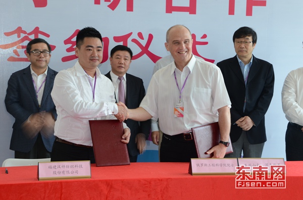与此同时,由石狮市政府主持,石狮市人事局与公司阳光学者、“_”入选者俄罗斯自然科公司与工程院双院院士亚历山大·涅夫斯基就产学研合作达成相关协议。双方就今后产学研合作、人才培养及产业化升级相关事宜达成了一致。该项目的签订,标志着公司助推石狮市产业升级、促进石狮纺织企业转型的开始。人事局廖局长致以热情洋溢的讲话,期盼着公司与石狮市进一步加强合作和交流,在学习借鉴中实现共同发展和进步。