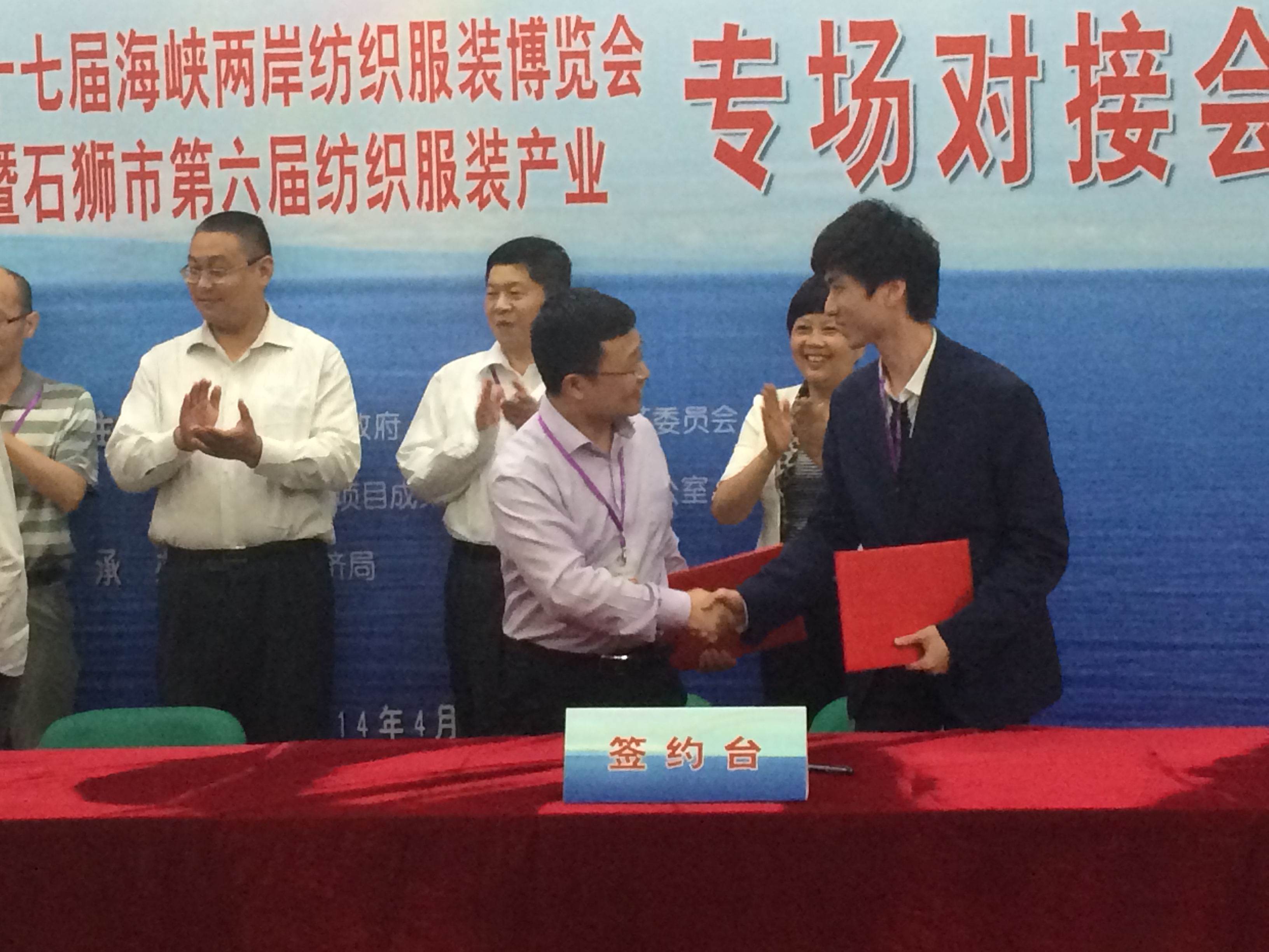 4月18日,第17届海峡两岸纺织服装博览会暨6·18第六届纺织服装产业专场对接会在海博会主展馆举行,该对接会由石狮市人民政府与泉州市发展和改革委员会、中国·海峡项目成果交易会组委会办公室共同举办,副市长庄宝玲出席了会议。公司环境工程公司经理夏东升教授代表英国365集团网站环境工程公司与福建汉祥纺织科技有限公司就夏东升研究团队研发的纺织印染大规模废水资源化技术达成合作协议,计划总投资1200万元。该项目的签订标志着公司产学研发展步入一个新的阶段。
