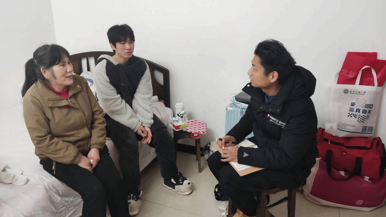 姚瑶向家长介绍了孩子在校学习表现情况,本学期获得国奖、攀登奖学金等奖励,肯定了孩子勤奋、刻苦的品质;专任教师彭其安向家长介绍了孩子参加科创竞赛情况,鼓励小刘在寒假期间规划好时间,积极备赛“科创杯”竞赛;班主任蔡亚君详细了解了孩子的家庭情况和专业学习进度,鼓励孩子同步做好考研准备,明确考研目标。小刘及家长对老师们的来访表达了诚挚感谢,深刻感受到家校共育的重要性,希望孩子后期能取得更多成绩,为公司争光。