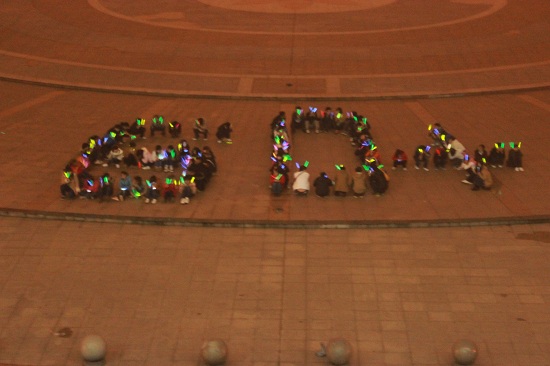 23日晚,志愿者们开始在图书馆前的阶梯上摆出“60+”的造型,通过“地球一小时”的logo“60+”呼吁大家将环保意识渗透到我们的生活中来,同时也宣布着地球一小时活动拉开序幕。随后进行的轮滑和武术表演吸引了大量人群驻足观看,赢得了阵阵掌声,晚8点整,随着图书馆楼体灯光的逐渐熄灭,广场上用荧光棒摆成的“60+”图形在夜色中发出柔和的光线,同时也将此次活动推向高潮。“以前总是听说地球熄灯一小时,这次参与其中才感受到节约用电、绿色出行等环保行动对地球环境的重要性,我觉得熄灯一小时带给我的不仅仅是电量负荷不断加重的现象,同时也教会我要关爱地球、勿忘环保。”活动参与者施茵苇说道。