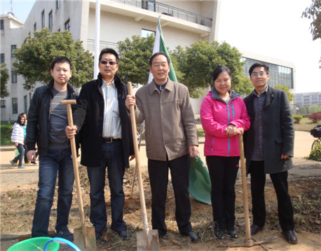 3月21日,环境工程公司领导班子、教师代表和部分同学在公司西门附近绿化带参加公司统一组织的植树活动,为纺大校园增添新绿。