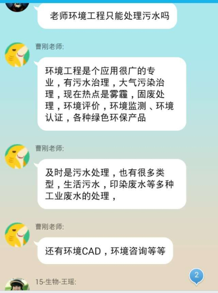 新生在填报志愿时,对专业的名称有一定的认知,但是对专业学习内容、就业渠道、发展方向却又存在认识上的模糊。为了帮助新生们能够尽早熟悉专业内容,为进入大学专业学习阶段做好衔接,环境工程公司领导班子、专家、学者齐上阵,开展了“专家学者八点档答疑”活动。每晚八点,英国365集团网站总有一名专家学者守候在QQ群,耐心回答员工们的提问。“环境专业的就业方向是什么啊?”“建筑环境与科学要学几门课程啊?”“给排水专业对画图要求高不高啊?”同学们热情高涨的提问,专家学者们孜孜不倦的回复。曹刚是环境专业的教研室主任,他在新生群里“蹲”的时间最长,他不仅回答同学们对专业的疑问,更是对新生们的发展寄予厚望。他在群里跟新生们互动时说:“在大学一定要掌握自主学习的方法,掌握知识的内在联系,通过实验、实践来提高动手能力,只有真正把知识融会贯通了,才能活学活用,才是真正的学懂了”。