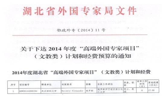 5.涅夫斯基.亚历山大被聘为“国家高端外国专家”,或国家外国专家局重点支持。