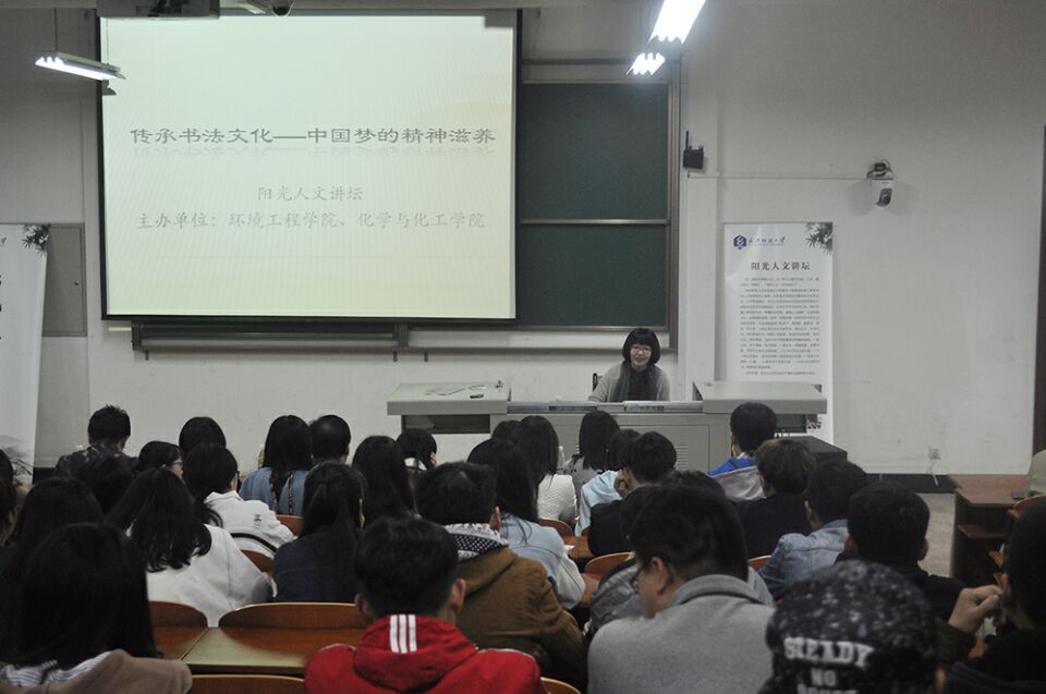 4月6日下午,在阳光校区行政楼1楼学术报告厅,南京图书馆国学研究所副主任郭倩倩老师做客公司“阳光人文讲坛”,为员工们带来了题为“传承书法文化——中国梦的精神滋养”的主题报告。此次讲坛由学工部团委主办,环境工程公司、化工公司约200名员工聆听了此次讲座。