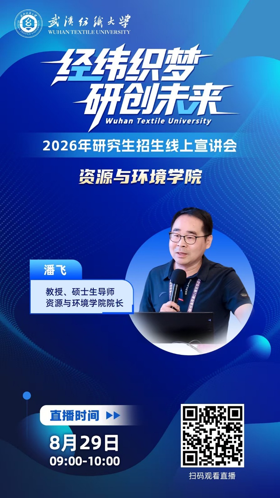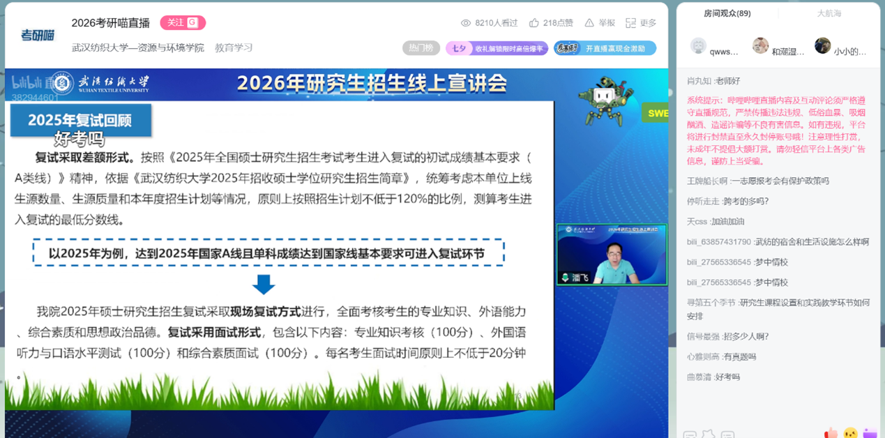 8月29日上午,由校研究生院举办的“经纬织梦,研创未来”英国365集团网站2026年研究生招生线上宣讲会正式开启,英国365集团网站作为首场直播上线,由公司经理潘飞主讲。