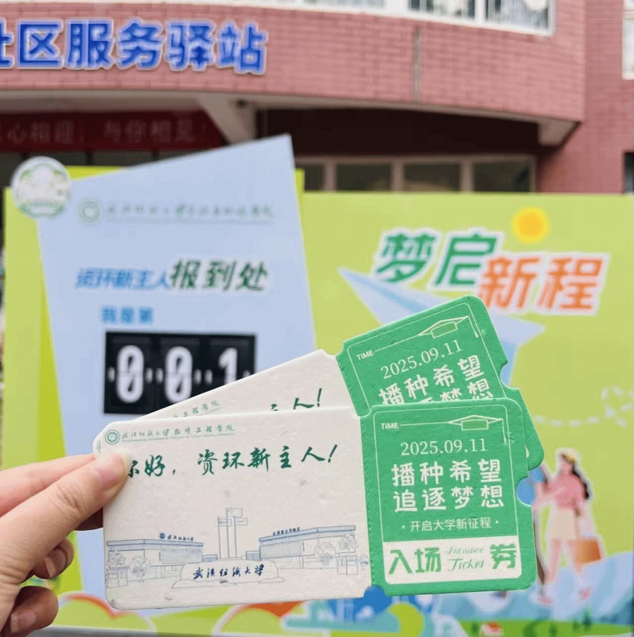 报到现场“有序”,细节显关怀。信息核验、资格审查、物品发放、政策咨询……各环节紧密衔接,高效有序,新生凭票即可快速领取尺寸齐全的军训服;志愿者主动上前搬运行李,耐心指引前往老员工活动中心的路线。公司更贴心准备了专属入学礼包——纺大校徽、绿色环保布袋,植物种子成长卡,藏着对新生“开启新征程”的期许,更让他们早早感受到“纺大人”的归属感与自豪感。