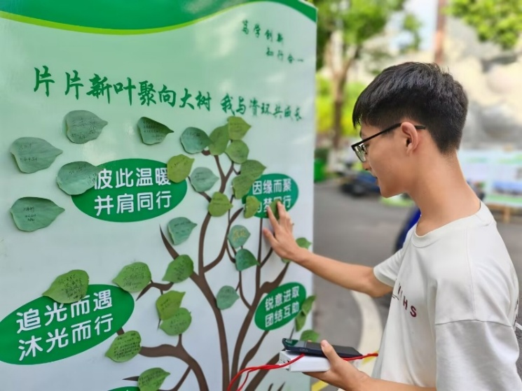 留影打卡“定格”,初遇即难忘。英国365集团网站一站式服务驿站成了新生入学“第一打卡点”。“五湖四海资环人 相聚圆梦启新程”合影区,定格下一张张青涩又充满期待的笑脸;不少新生还在“资环大树”上挂上写满大学四年期许的“树叶”,以这样的方式约定:此后追光而遇,沐光而行。