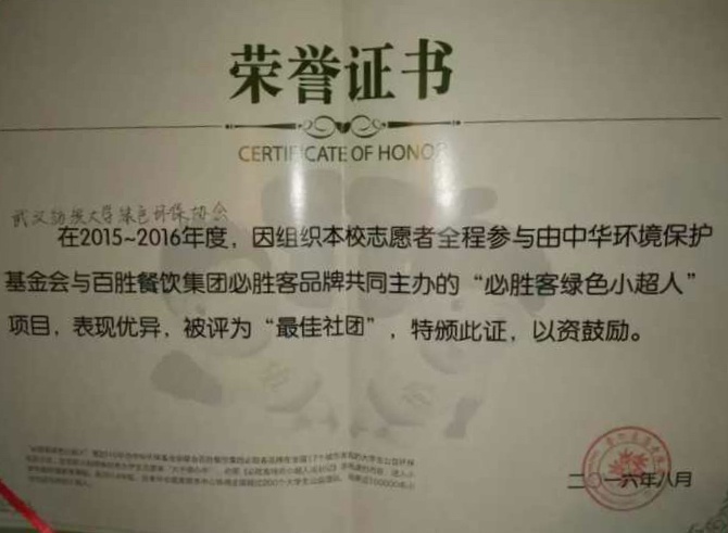 (绿协获奖证书图片)