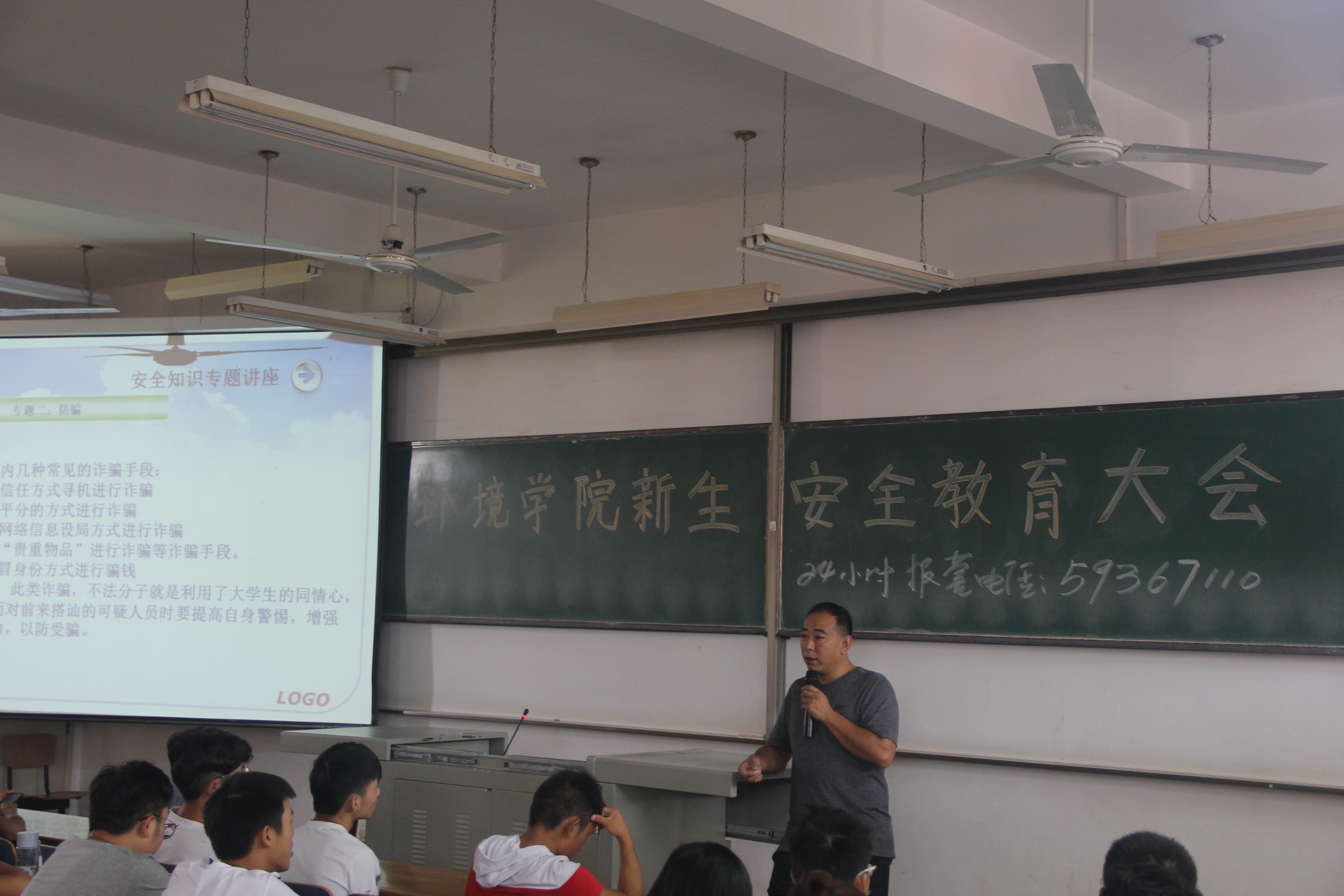 9月30号上午8点和10点,公司分别在三栋教学楼416与T101教室举行了新生安全教育大会,由校保卫处尚天飞老师和夏向阳老师主讲。