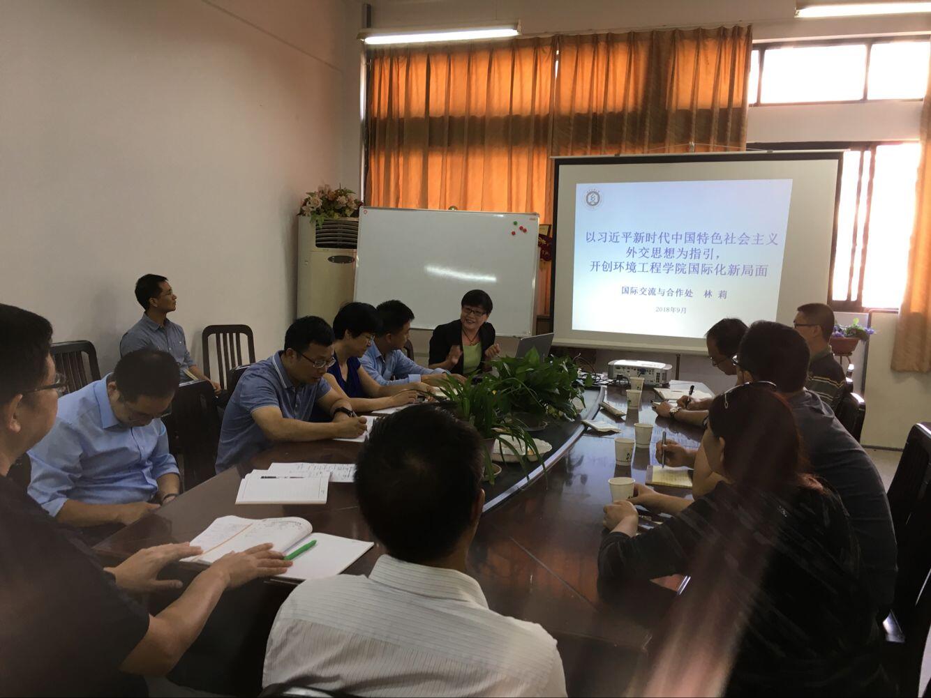 林处长作了题为《以习近平新时代中国特色社会主义外交思想为指引,开创环境工程公司国际化新局面》的报告。她指出,习近平外交思想以“十个坚持”为总体框架和核心要义,明确了新时代我国对外工作的历史使命、总目标和必须坚持的系列方针原则,深刻揭示了新时代中国特色大国外交的本质要求、内在规律和前进方向。高校对外交流与合作工作必须要以习近平外交思想为指引,深刻领会蕴含其中的立场、观点、方法,推动外事工作与国家外交方向一致、同频共振。林处长从国际合作办学、海外合作伙伴拓展、国际会议、国际学术组织、校企合作等方面详细介绍了公司的国际交流合作项目,并希望公司在苦练内功的同时,积极整合资源、加大宣传力度、主动走出去,有效提升对外工作水平。
