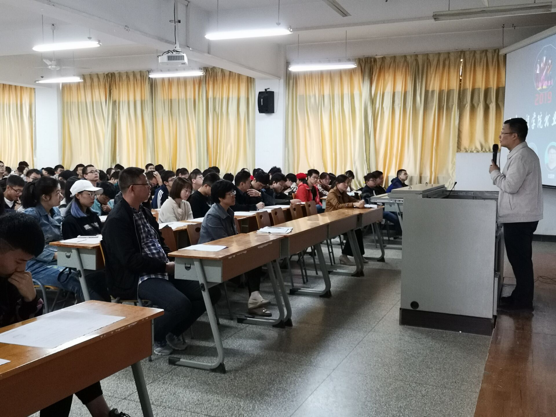 随后,夏经理以环境工程专业为例,介绍了当前产业升级背景下对高学历、高技术人才的需求情况,并对2019届研究生的招生政策和招生专业做了详细的讲解,他建议考研同学明确目标、注重专业和实践结合,协调好复习时间,取得满意成绩。