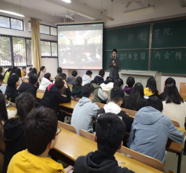 会议开始,各年级辅导员通过视频展示了两会的相关资料,让同学们了解到两会召开的意义以及今年政府工作报告的内容,提到的问题都是事关改革和发展大局的热点,多方面的改革措施都充分反映了全国人民的发展需求。