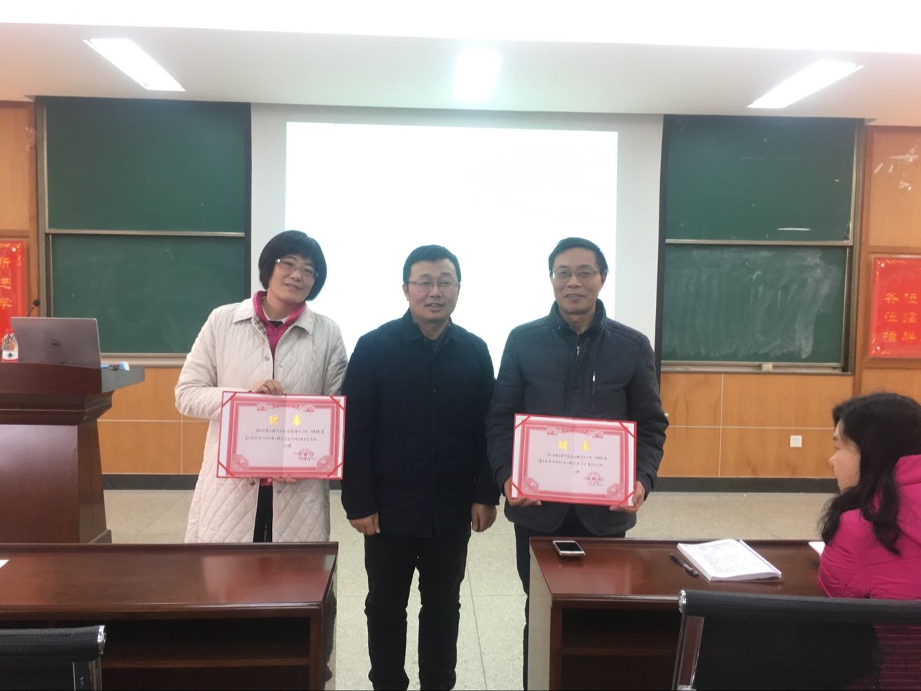 会上,公司领导班子分别就寒假前相关工作进行了通报和部署。夏东升经理代表公司为新当选的学术委员会主任谭远友、教学指导委员会赵晖颁发了聘书。谭远友老师通报了学术委员会开展情况,从研究生开题、答辩和教师申报各级各类课题等方面进行了工作报告。