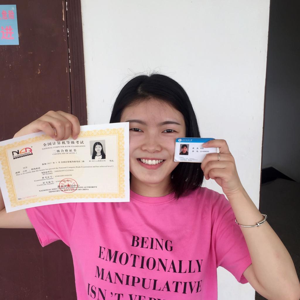 员工的第一要务是学习,自上大学以来,刘芳开始明白不像高中时有人敦促,在学习上只能自己督促自己,要端正态度虚心地向老师以及优秀的同学学习,并且她也一直按照这个标准来要求自己,成绩一直保持在班级的前十名。之后刘芳申请加入了公司的专业实验室,跟随老师参与一些项目,学习专业画图操作,收获颇丰。在大一大二期间,她通过了全国老员工英语四级、六级考试,拿到了计算机二级合格证书。为了提升自己的思想觉悟,受到身边优秀同志的积极影响,刘芳从大一便萌生了加入中国共产党的想法,于是大一时申请入党,成为积极分子,大二成为发展对象,在大三,刘芳正式地成为了一名党员。