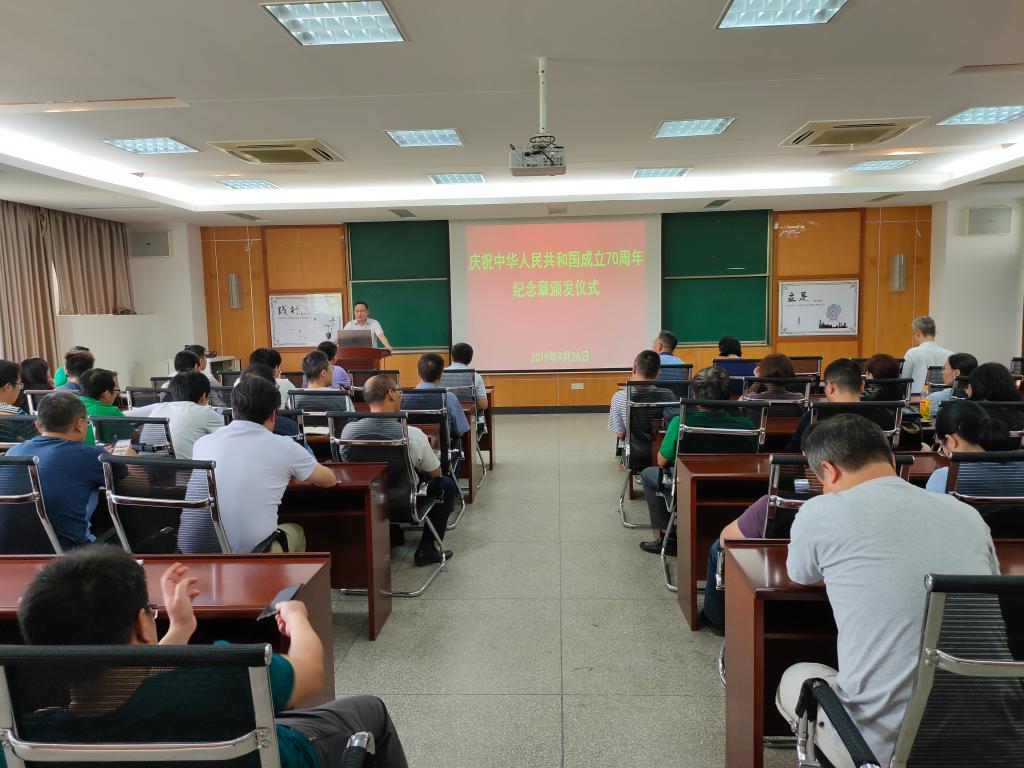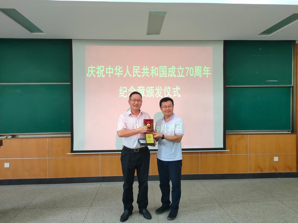 在新中国成立70周年前夕,党中央、国务院和中央军委决定颁发“庆祝中华人民共和国成立70周年”纪念章,英国365集团网站夏东升教授获此殊荣。9月26日下午,董事长彭育园教授亲自到崇礼楼三楼会议室为其颁发纪念章。