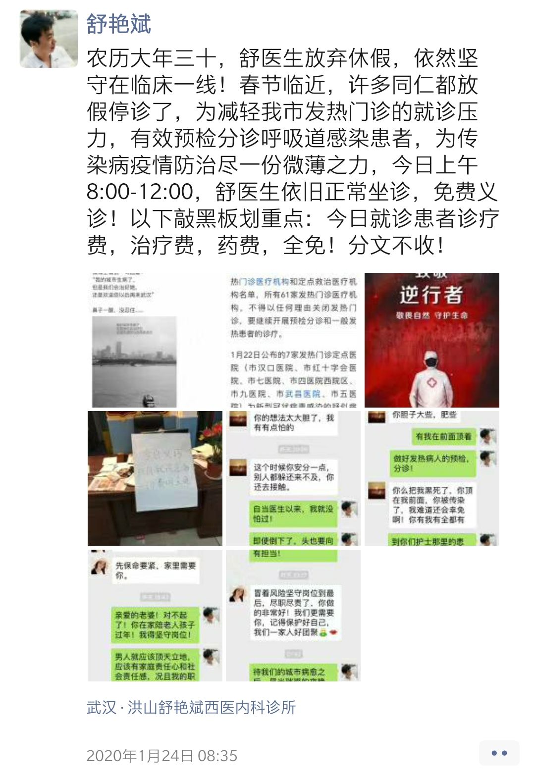 我想,每年过年,谁都少不了两餐年夜饭,一餐去爷爷家,一餐去外公家。但是今年外公家的年夜饭,却没有把人凑齐。我大舅舅舒艳斌是武汉的一名医生,经营着一家社区诊所。