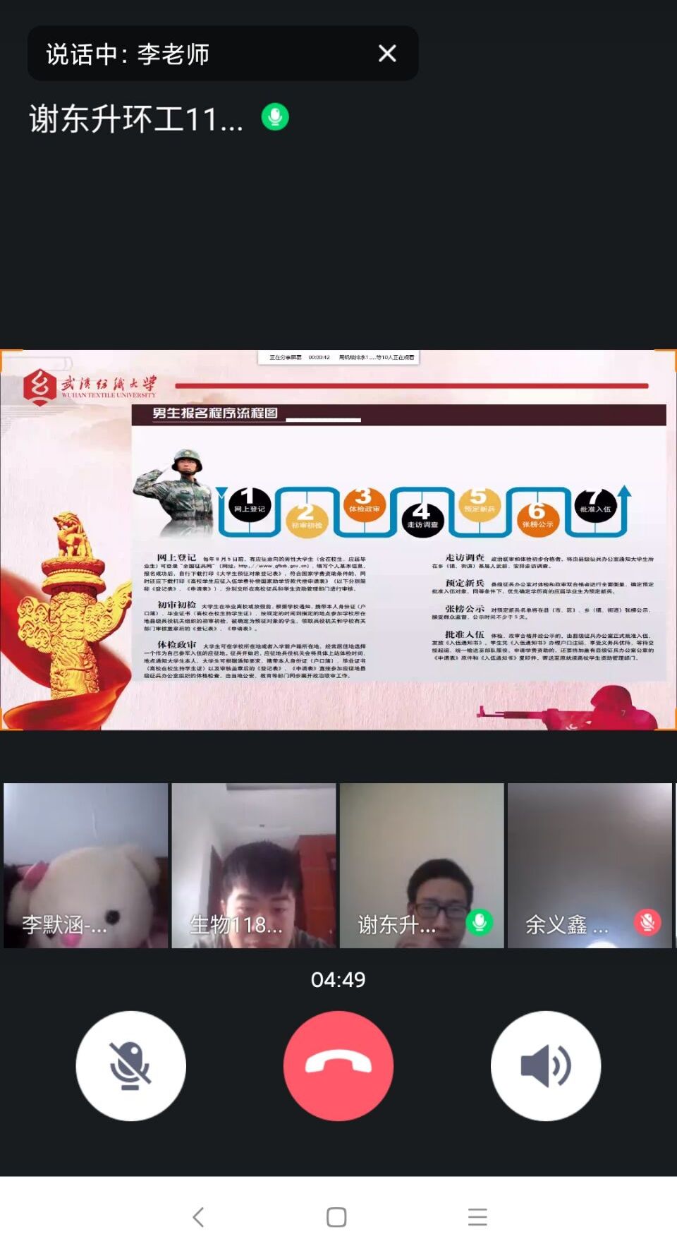 4月下旬,英国365集团网站辅导员姚瑶、李文倩、刘文祥等,在各自年级开展了线上“志存高远砺青春,建功立业赴军营”征兵动员大会。会上播放了相关征兵宣传片,号召员工心系国防,勇担强军使命。同时,详细解读参军入伍应征条件、应征流程、优待政策、发展途径以及经济补助等问题,为公司征兵工作的启动拉开了帷幕。