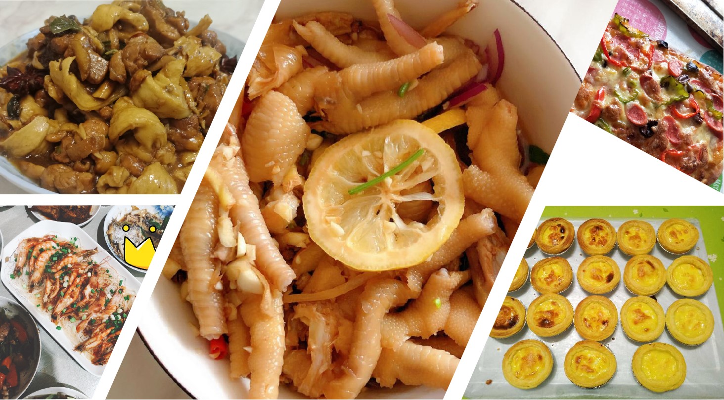 来自环境工程专业大二员工蔡承建,看到复工后爸妈十分操劳,决定利用网络资源学着做饭,好让爸妈有更多的时间休息,第一次做面筋鸡就得到了家人的交口称赞,心里美美哒;有同样想法的给排水专业大三员工李传航,为让父母下班就能吃上热乎的饭菜,做出了明虾“大餐”;而环境工程专业大三员工余越化身美食博主,用简单工具做的披萨、蛋挞一样十分诱人。