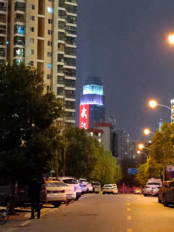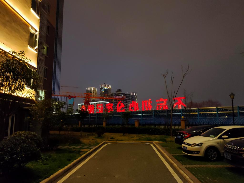 回家步行只有15分钟,我走的很慢,空荡荡的街道,路边的车早已布满灰尘。深呼一口气,我抬头远望,远处高楼上闪烁着“武汉加油”四个大字,“武汉加油、湖北加油、中国加油”,我在心里默默念着。