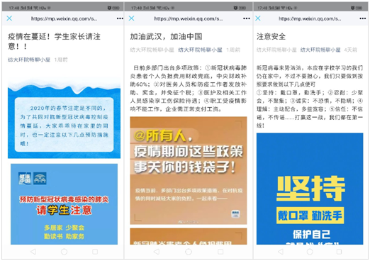 公司发布了《疫情期间开展心理帮扶》的通知,公司学工老师、心理二级站同学开通心理咨询热线,提供24小时在线帮扶,随时待命,随叫随接,保证工作赶上变化;疫情期间,连续推送防疫知识、正能量内容,积极预防、减缓、减轻疫情对同学们造成的心理影响。