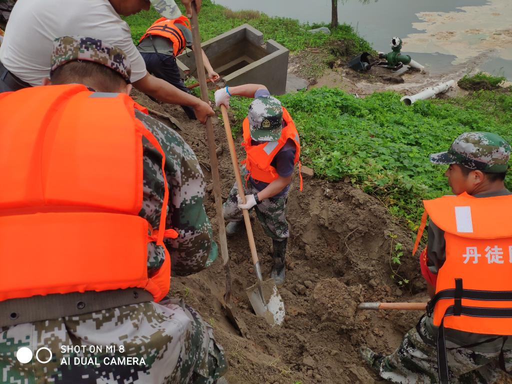 西江段长约600米,每天沿堤巡查不下数十趟。7月16日,我在巡查中发现一小段江堤异常潮湿,翻开覆盖的杂草,有明显的渗水痕迹。“千里之堤,溃于蚁穴”,虽然小渗水可能对江堤安全影响不大,但出于谨慎,我还是立刻向指挥部作了报告,经过专家查看商议,决定对这段江堤进行抢修式加固。战斗的号角再一次吹响,下午一点,正是一天中最闷热的时候,我们早早上到江堤待命,挖掘机、运沙车随即赶来增援。在挖掘机挖好沟渠后,剩下的挖土、扛沙袋、打桩全部交给我们,100百多米的险段,我们10个民兵顶烈日、冒酷暑,连续奋战6个小时,终于解除了安全隐患,虽然我是小身板,但同样蕴藏着大力气。