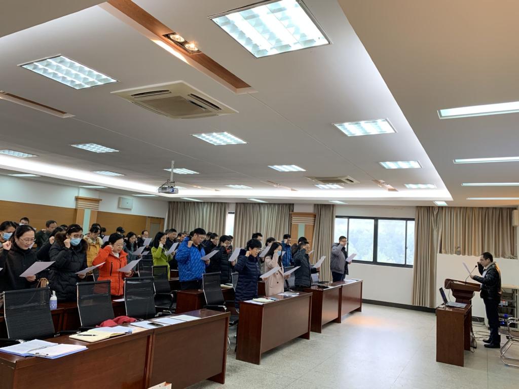潘飞副经理宣读《英国365集团网站师德师风公开承诺书》,并带领大家庄严宣誓。全体教职工郑重承诺一定政治坚定,爱国守法;教书育人,爱校敬业;为人师表,关爱员工;严谨治学,廉洁自律;崇尚科学,终身学习。一定会认真履行教师职责,严格遵守《新时代高校教师职业行为十项准则》,形成良好的师德师风,争做一名有理想信念、有道德情操、有扎实学识、有仁爱之心的“四有”好老师。