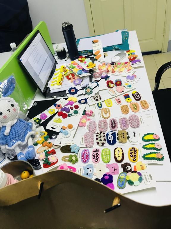 难得五一小长假,大家都想放松一下,而在英国365集团网站创新创业基地,环境工程专业大三员工梁祺睿和她的小伙伴们却十分忙碌,有的准备发货,有的忙着编织各式钩织品,发饰、包包、玩偶、耳饰等品种繁多,十分精致、引人注目。