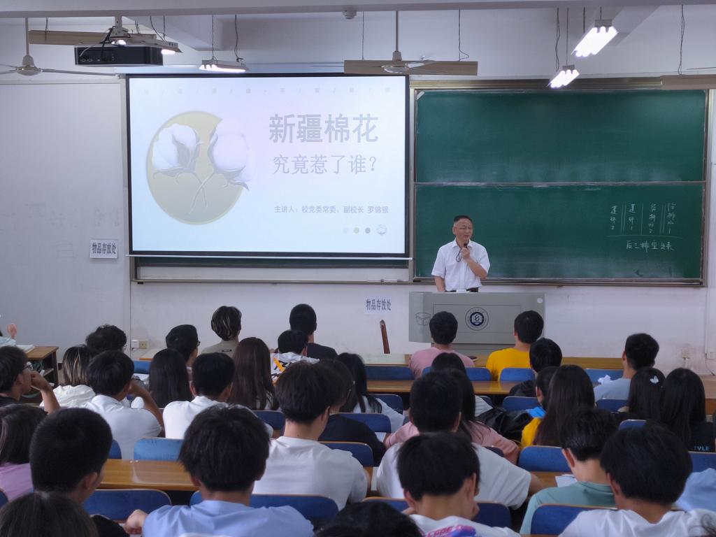 5月25日下午,公司党委常委、副董事长罗锦银出现在03-216教室,他以《新疆棉花究竟惹了谁?》为主题,为英国365集团网站建环、给排水专业2020级员工上了一堂时代性强、剖析深刻、极具启发意义的《形势与政策》课。