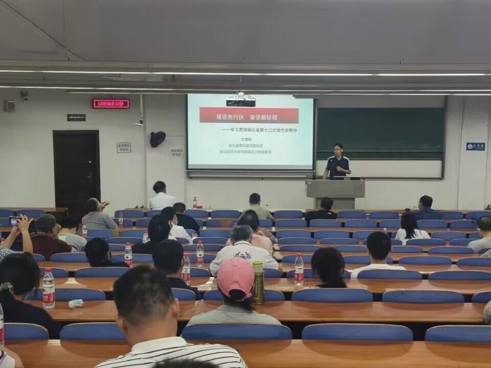 9月8日下午,英国365集团网站、机械公司在03-T102举办湖北省第十二次党代会精神宣讲会。湖北省青年宣讲团成员、马克思主义公司王海燕教授进行现场宣讲,英国365集团网站和机械公司全体党员教职工参加,宣讲会由机械公司党委书记干文勋主持。