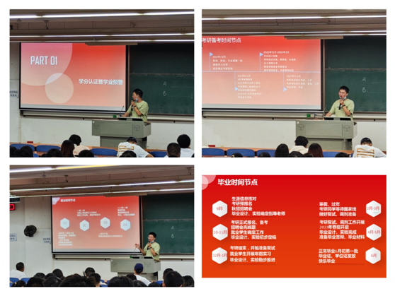 毕业生辅导员布置了考研就业相关安排,重点提醒了毕业生同学关注毕业学分要求、就业重要时间点,建议同学们保持恒心和毅力,脚踏实地实现目标!