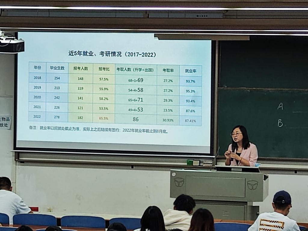 姚瑶以公司近5年的考研就业数据为同学们分析了当前就业考研形势,并分析了“逆向考研”、“缩招”等就业热象背后的原因,建议同学们认清形势、全面准备、主动出击、抱团成长,为大学四年划上圆满的句号。