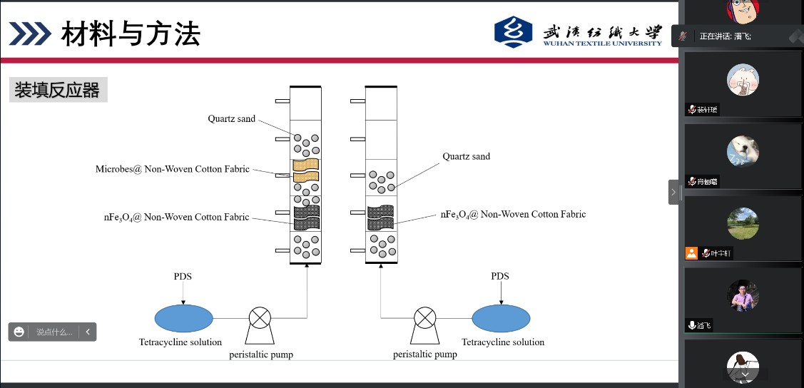 王笠同学构建以棉基纳米四氧化三铁(nFe3O4)和微生物(Microbes)为填料,过硫酸盐为氧化剂的固定化填充柱对盐酸四环素(TCH)废水处理体系。