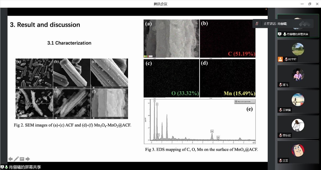 邓雨薇同学制备了改性苎麻纤维生物炭(PABC),并通过系列实验探究了其形貌的变化以及对亚甲基蓝染料(MB)的吸附性能。论坛内容丰富精彩,各主讲人针对自己的研究内容展开了生动的汇报,老师们对研究生的报告进行了点评并提出了建议。本次论坛的顺利开展为本院研究生后续的学习与研究开拓了思路,也为环境工程公司优秀研究生的培养奠定了坚实的日常基础。