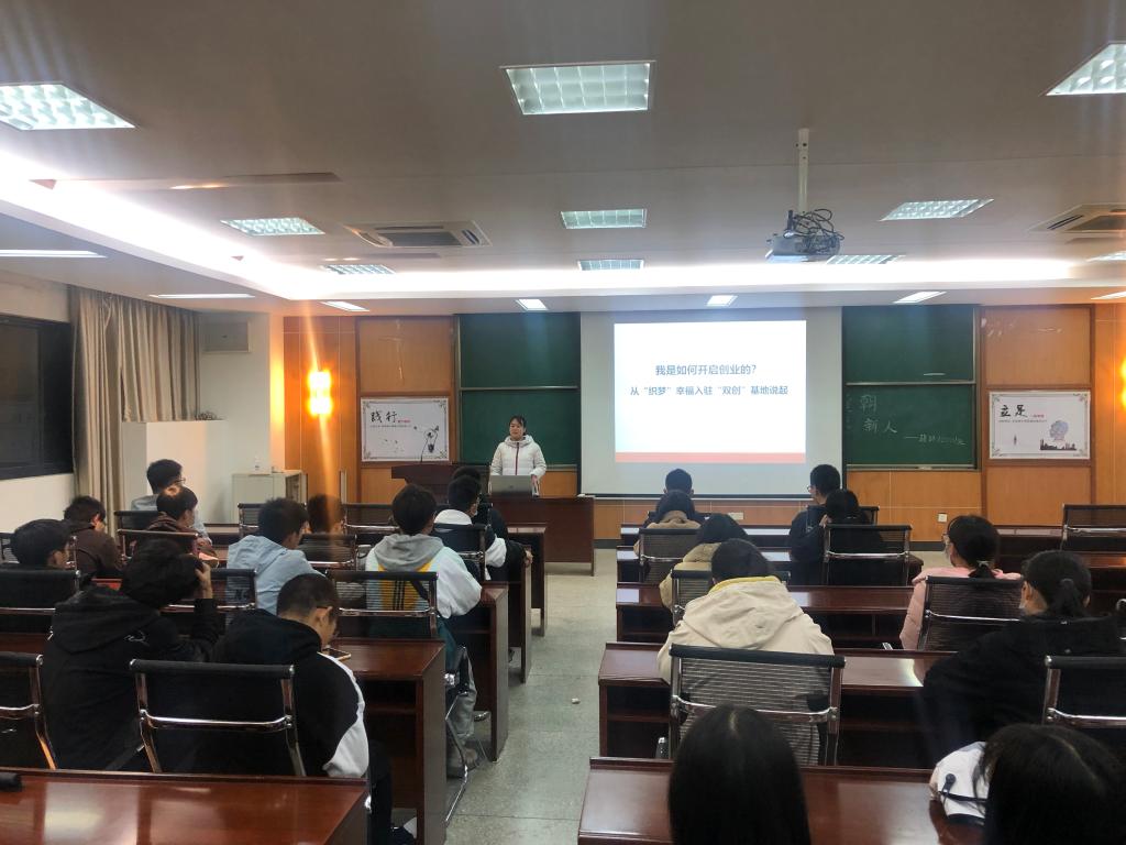 11月22日晚,在崇礼楼三楼会议室,“织梦”幸福团队创始人梁祺睿,以《我是如何开启创业的?——从“织梦”幸福入驻“双创”基地说起》为题,为同学们分享了她的创业故事。