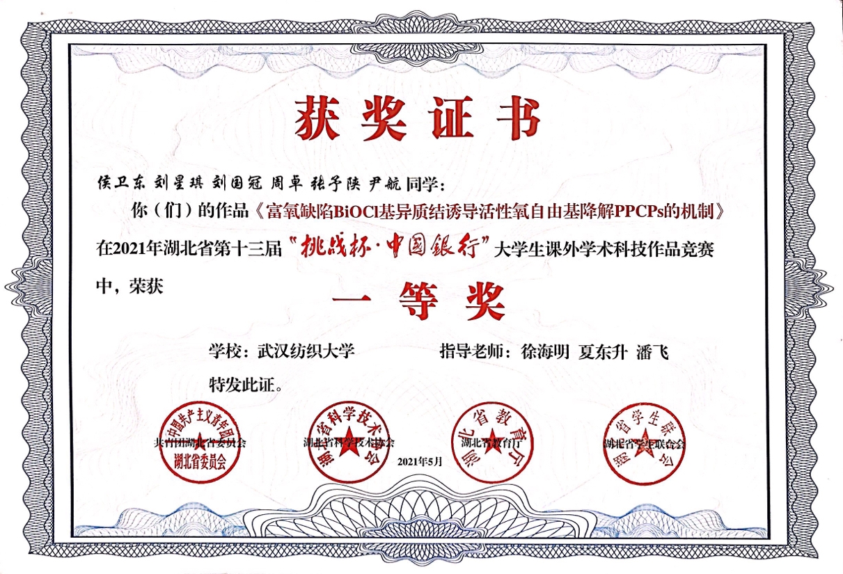 (侯卫东、刘星琪获“挑战杯”湖北省一等奖)