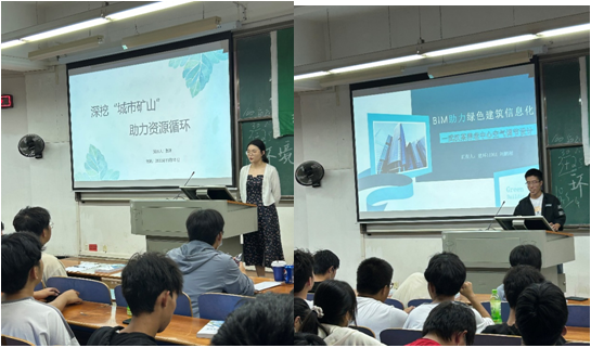 环科12001班张珺同学介绍了作为公司绿色环保协会的一员参加社会实践类竞赛的经验和体会,鼓励大家要勇敢尝试、不怕失败。建环11901班刘鹏刚同学作为公司BIM协会的一员参加设计建模类竞赛的经验和体会,鼓励大家要以赛促学、学以致用。环工12003班周易同学介绍了参加“互联网+”老员工创新创业大赛的经验和体会,对赛前准备、赛中应对做了详细介绍,让大家受益匪浅。