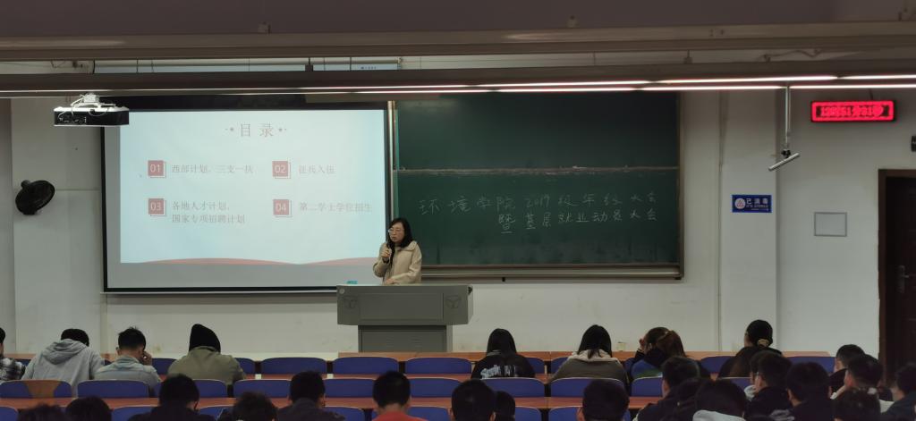 会上,姚瑶向毕业生介绍了目前各班的考研、签约情况,重点介绍了西部计划、三支一扶、征兵入伍、各地人才引进资讯、国家专项招聘计划等基层就业相关政策,并分享了基层就业典型援藏干部左嘉伟的事例,公司近年来基层就业情况,鼓励同学们深入了解基层就业政策,运用专业知识服务地方、服务家乡。