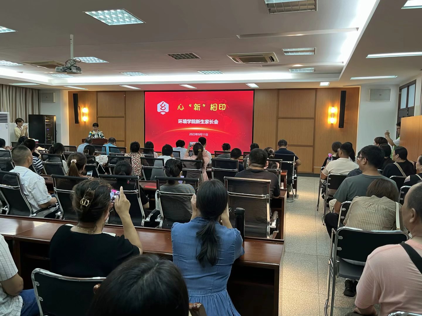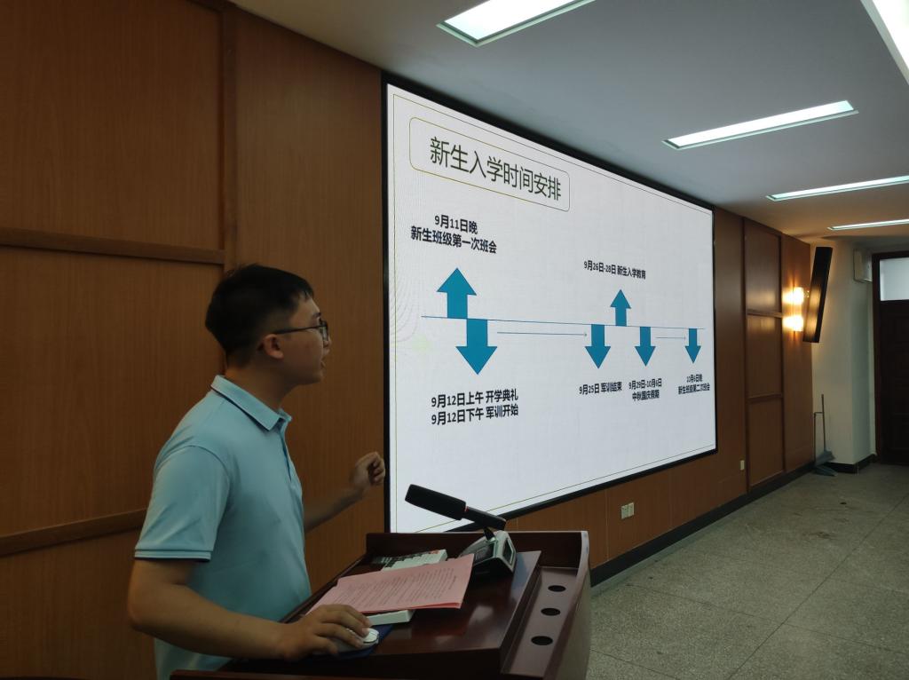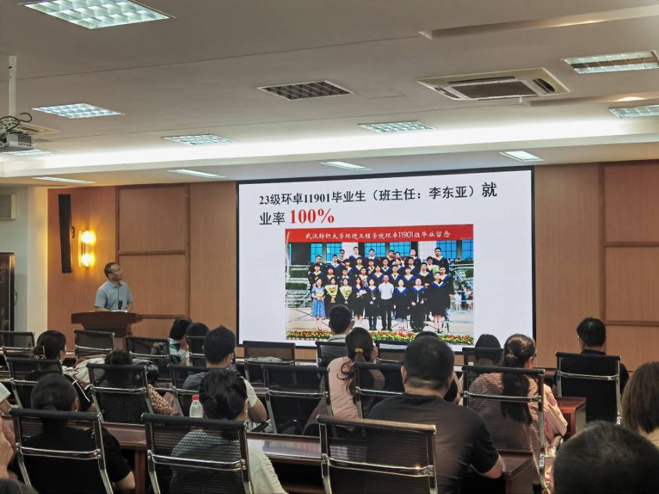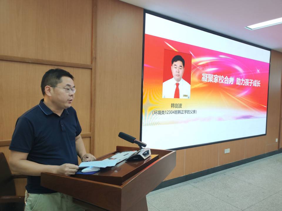张宇航介绍了新生情况及入学教育安排。环境12304班韩正宇同学的父亲作为家长代表发言,表示会积极配合公司做好孩子从高中到大学的衔接教育,让孩子们尽快调节好身心状态,做好大学四年的学习规划。