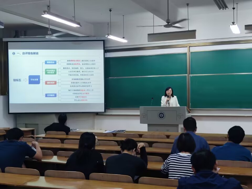 蔡亚君作审核评估工作报告、部署迎评工作任务,她结合公司《自评报告》深刻阐述人才培养核心逻辑、员工发展核心要义、人才培养的逻辑路径,以评估问题案例为背景分析专家要“看什么”、“怎么看”,提示老师们做好迎评准备。她强调,当前审核评估已全面进入临战状态,全体师生要坚定信心、同心同德、勇于担当,以最好的精神面貌迎接本次审核评估。