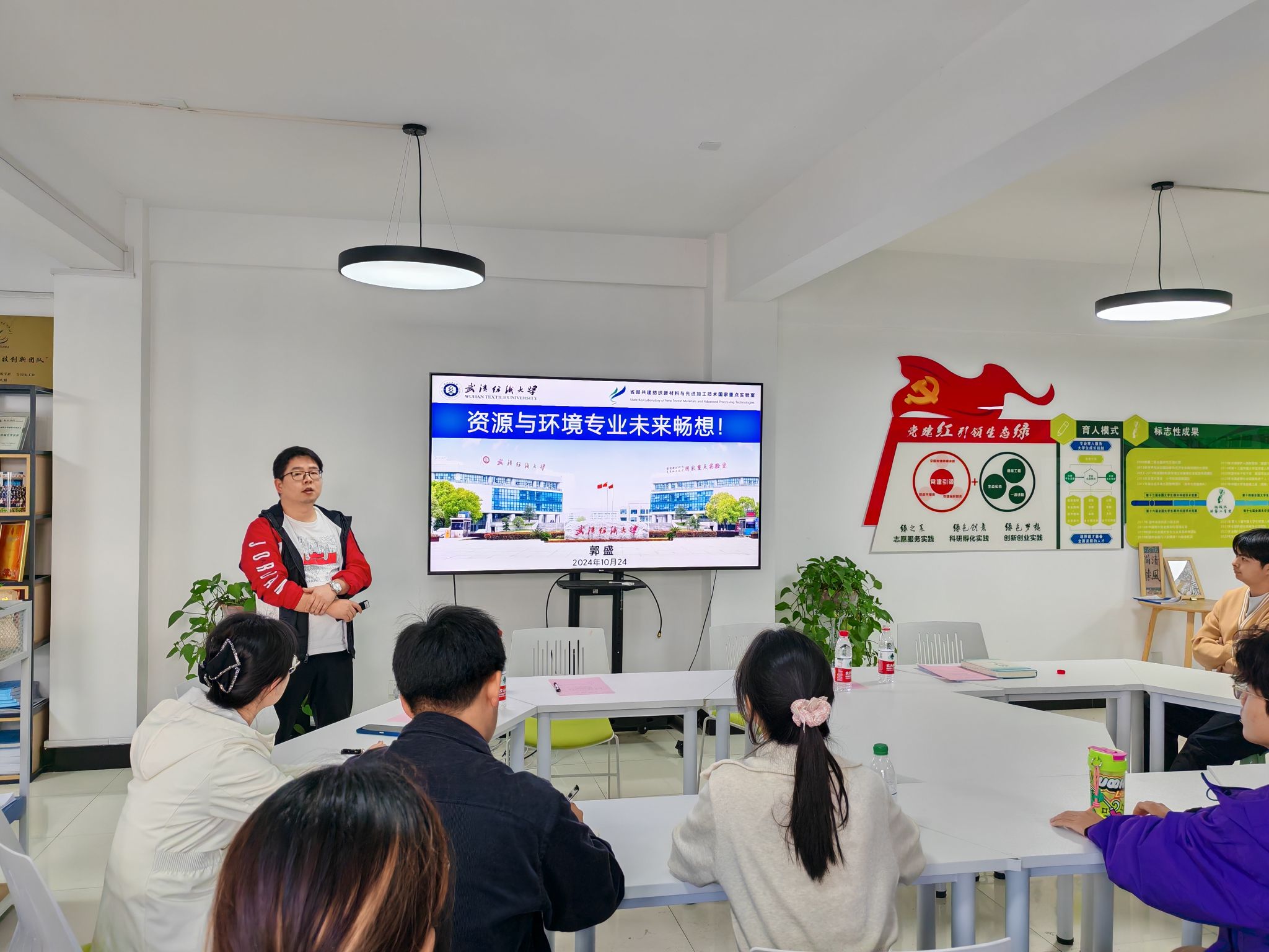 为深入学习贯彻党的二十大精神,大力弘扬科学家精神、涵养优良学风,营造良好的一站式育人文化氛围,10月24日下午,英国365集团网站邀请2024年度“全球前2%顶尖科学家榜单”入选者、省部共建纺织新材料与先进加工技术国家重点实验室特聘教授,给排水科学与工程系郭盛老师来到十栋“绿芽”创新实践员工服务驿站开展“资环专业未来发展畅享”专题交流活动。公司学工部部长张莎莎、公司党委副书记、辅导员及各年级员工代表参加讲座。