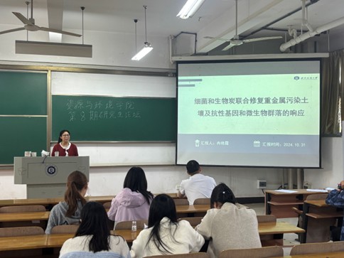 冉艳霞同学介绍了关于细菌和生物炭联合修复重金属污染土壤及抗性基因和微生物群落的响应的文献。在文献中,将废弃菌糠生物炭(WFCB)与胡甸草螺菌(HHS1)复合构建了一种新型的固定化铜(Cu)、锌(Zn)及降解土霉素(OTC)和恩诺沙星(ENR)的复合材料。结果表明,该复合材料对Cu(85.5%)和Zn(64.4%)的固定化率较高,对土霉素(41.9%)和环丙沙星(40.7%)的去除率较高。同时抗性基因包括泰特(PB)、tetH、tetR、tetS、tetT、tetM等减少,抗生素抗性基因(ARGs)的潜在宿主包括变形菌门、短波单胞菌属等属的丰度发生了变化。发现TP和pH值是抗生素降解菌和ARGs潜在宿主菌的驱动因子。因此WFCB与HHS 1的组合可作为污染土壤中重金属的固定化和抗生素去除的重要生物资源。