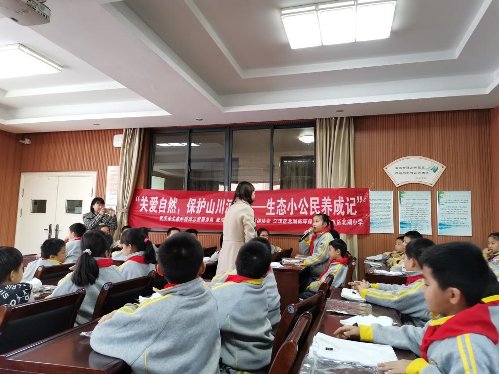 据悉,本次活动是武汉市生态环境局举办的“关爱自然,保护山川河流——生态文明一路同行”系列公益活动之一。当天,来自武汉生态环境局志愿服务队、英国365集团网站绿色环保协会的志愿者们走进北湖小学,通过多种形式的课堂活动,给孩子们讲解生态环保知识、传递生态环保理念。