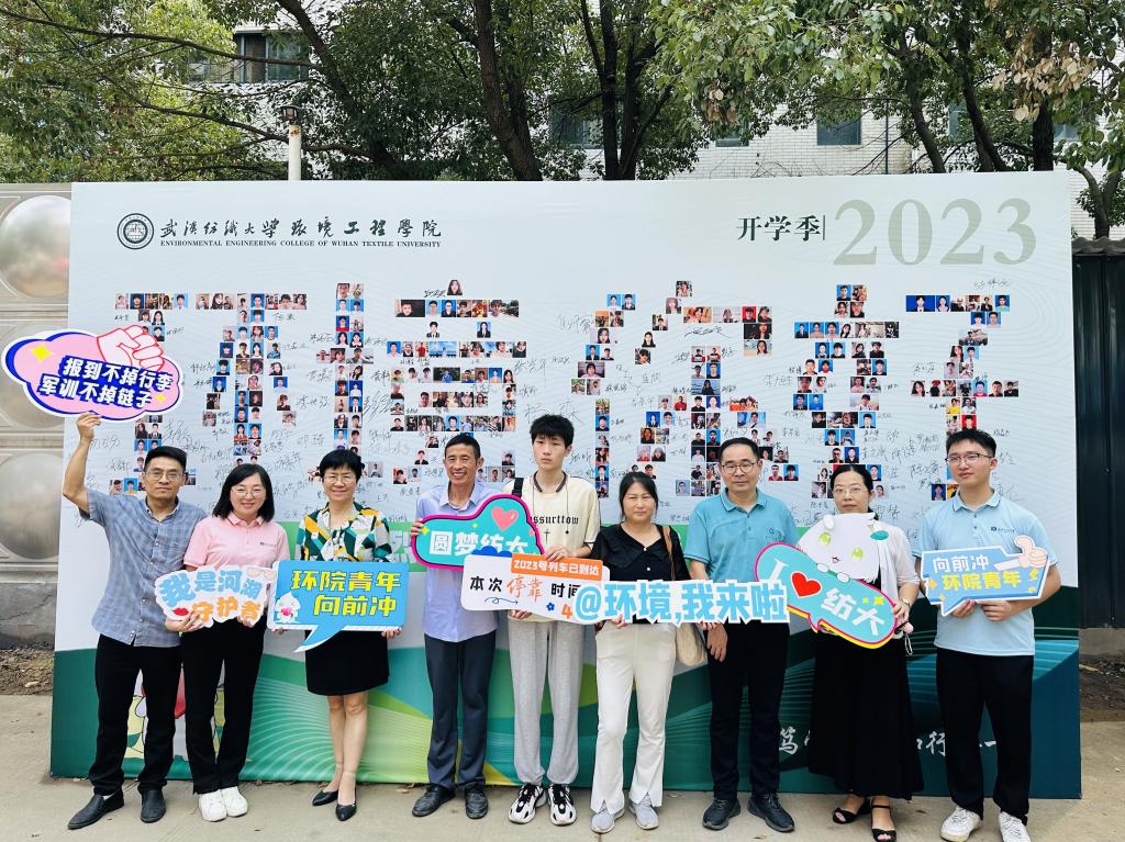 公司围绕“和大家一起分享你的生活”主题,收集了295名新生的个性照片拼接成“环境 你好”的字样,有的晒出了自己和录取通知书的合影,有的晒出自己的运动瞬间,有的晒出了自己的微笑......签名墙前人来人往,新生和家长们满怀期待地寻找自己的照片并签名留下笑脸合照,印在墙上的不仅是名字,更是一个新的开始。快门按下的瞬间,留下笑脸,也留下了这难忘的一刻。