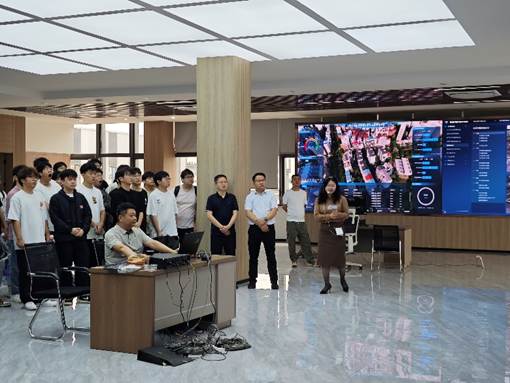 在湖北飞迈科技有限公司代表的热情接待下,员工们首先了解了企业的发展历程、核心业务以及在智慧城市、应急管理领域的创新成果。随后,在技术人员带领下,师生们近距离感受城市智慧大脑应急平台。通过可视化大屏上,对消防、防涝、工业园区危化品防控等的各类关键数据动态汇聚、智能分析,实现全域感知、智能预警、协同指挥能力,展示了该技术在灾害模拟推演、应急预案优化、应急资源智能调度等方面的巨大潜力和实际效能。