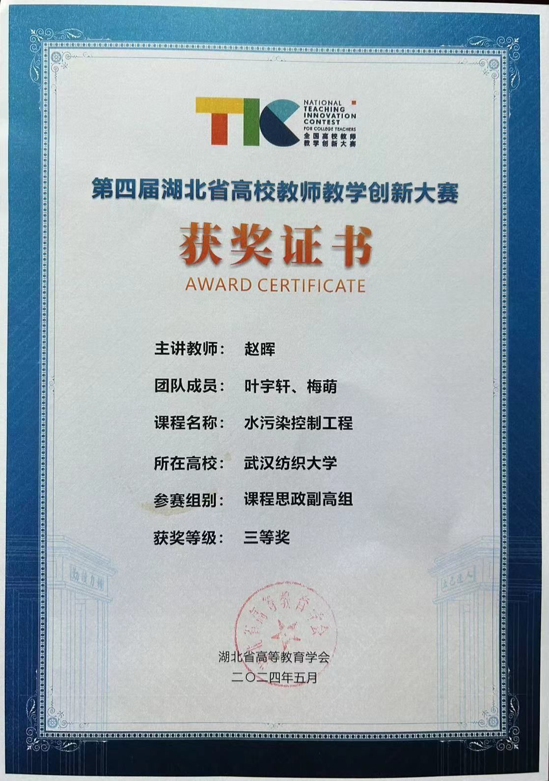 日前,第四届湖北省高校教师教学创新大赛产教融合赛道比赛在华中农业大学顺利落下帷幕,标志着第四届湖北省高校教师教学创新大赛比赛项目全部结束,公司赵晖老师《水污染控制工程》课程团队获课程思政组副高组三等奖。