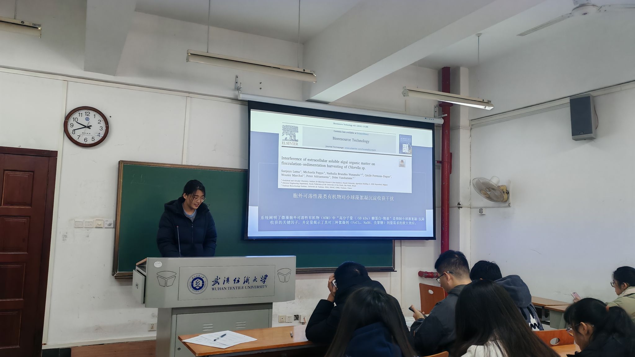 马子月同学探讨了“胞外可溶性藻类有机物对小球藻絮凝沉淀收获干扰”,讲解胞外可溶藻类有机质(AOM)对小球藻絮凝—沉降收获过程的干扰机理,定量揭示其对三种絮凝剂(FeCl₃、NaOH、壳聚糖)剂量需求,确定“高分子量(>50 kDa)糖蛋白-羧基”是抑制小球藻絮凝—沉降收获的关键因子,AOM中的活性官能团可以为AOM作为絮凝剂或原位絮凝剂提供新的途径。