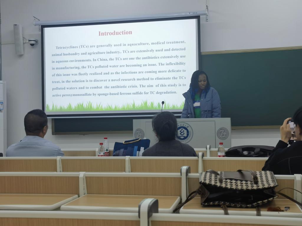 4月22日上午,与会人员认真听取来自全国纺织服装相关高校专家学者关于纺织服装专业研究生教育、人才培养的主题报告。4月22日下午,职工Ngoulou在研究生论坛上做了题为“Peroxymonosulfate activation by sponge-based FeS material for efficient degradation of tetracycline: The critical role of sponge”,针对海绵基材料负载FeS降解典型抗生素四环素的性能及机理进行了介绍,与会老师就研究内容给出了相关建议。Ngoulou的报告荣获大会研究生论坛三等奖。