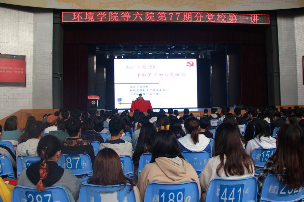 4月11日,环境工程公司、化学与化工公司、电子与电气工程公司、外国语公司、数学与计算机公司、技术研究院六院联合,在老员工活动中心演播厅举办第77期分党校开班典礼暨第一次党课,公司党委书记谢晓萍同志为主讲人,共453名学员参加了此次党课。