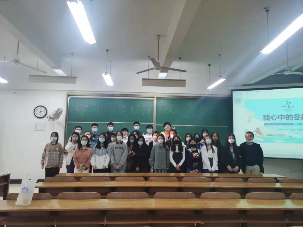 活动伊始,同学们合唱《共青团团歌》,教室响起了同学们嘹亮的歌声,所有同学积极融入活动当中,现场气氛非常活跃。班长上台与同学们分享了“习近平在北京2022年冬奥会欢迎宴上的致辞”“习近平给中国冰雪健儿的回信”“二〇二二年新年贺词”等内容,字里行间体现出习近平总书记对广大青年的殷切期望,引导青年以中国冰雪健儿为榜样,坚定理想,刻苦学习,砥砺品格,增长本领,努力实现德智体美劳全面发展。同学们深受鼓舞,环境科学11901班梁露馨表示,习近平总书记在国家体育场“鸟巢”,宣布24届冬奥会正式开幕,北京成为“双奥之城”,极大的震撼了我们青年学子。中国的发展日新月异,世界和平来之不易,我们应该牢记奥林匹克运动的初心,为维护世界和平贡献一份力量。