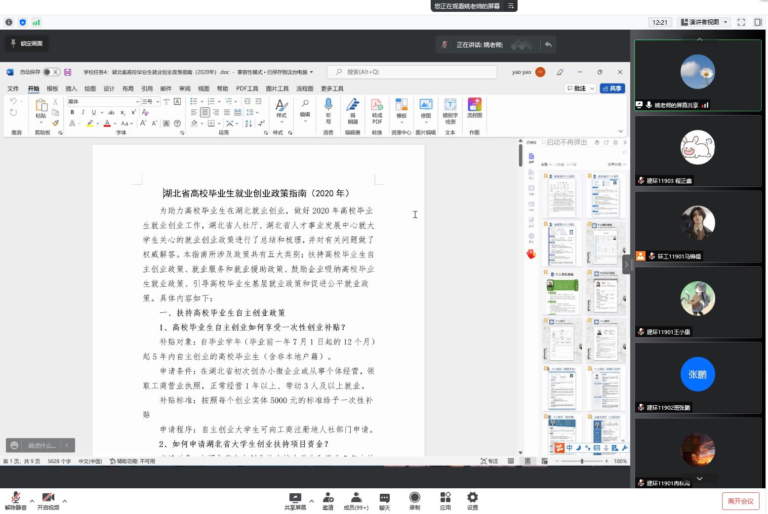 为进一步宣传湖北省就业创业相关政策,提高员工的就业创业意识,英国365集团网站各年级于3月27日在线上开展就业创业政策宣讲主题班会,公司副书记刘园美、各年级辅导员、班主任及全体员工参加。